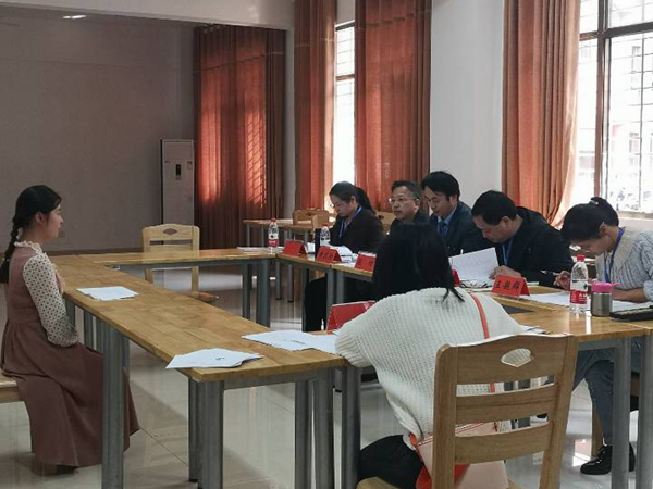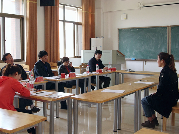 在立言楼B417的学科语文(非全日制)面试教室里,考生罗萍姣因紧张,自我介绍断断续续,院长刘奇玉笑着对她说道:“没关系啊,不要紧张,慢慢来,不急。”关切的眼神让她感到一些放松,长舒了一口气害羞地笑了笑,开始了流畅地回答。老师们一些专业的提问,她也能回答出来。吴投文老师对她“如何训练听说读写方面”问题的回答表示赞许,他说“语文和生活是分不开的。”