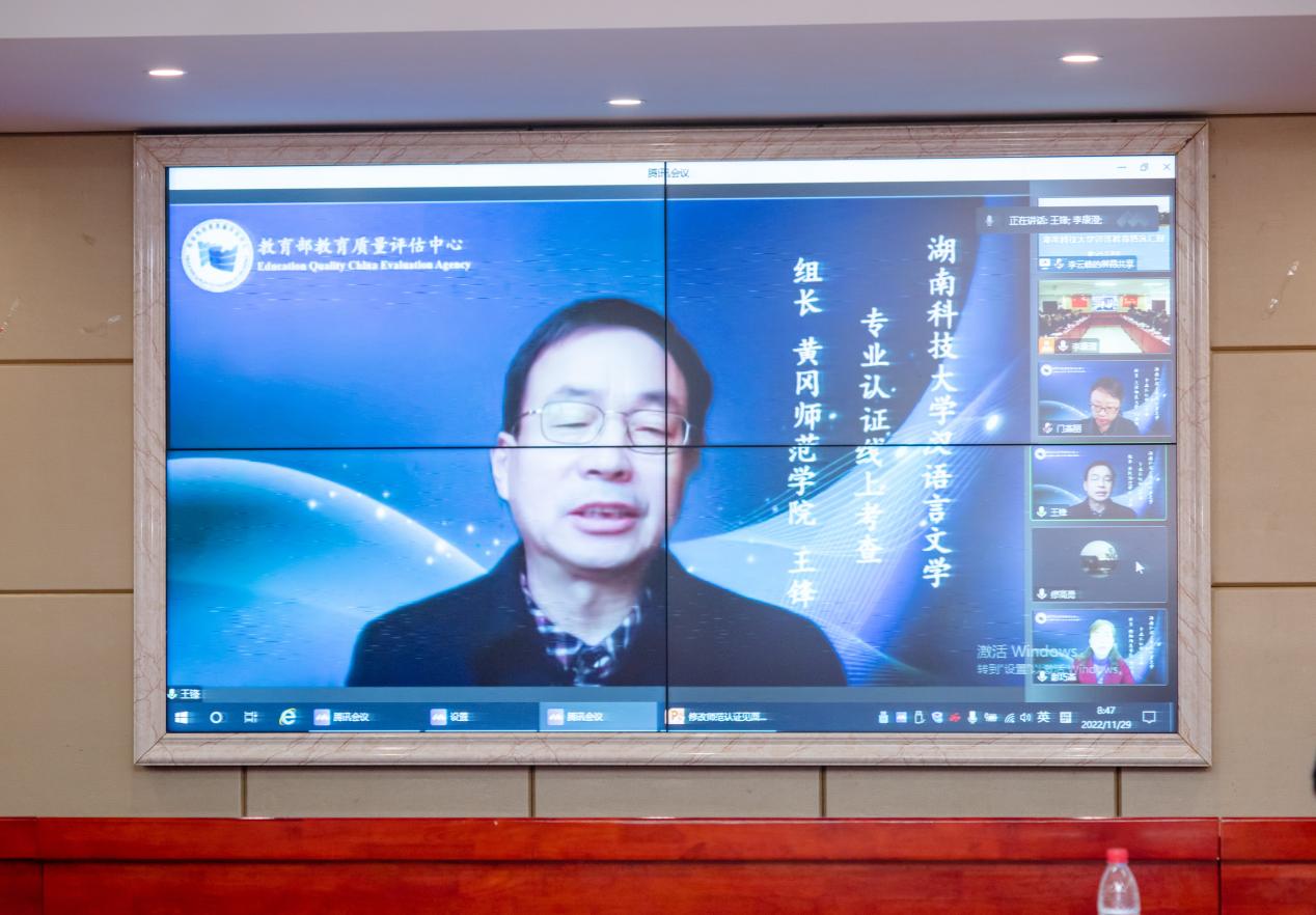 11月29日上午,OD.COM平台·(中国区)体育官方网站汉语言文学师范类专业认证专家组见面会以线上的形式在立言楼4-1室召开。黄冈师范学院王锋、集美大学李雪、衡阳师范学院彭巧莹、天津师范大学门燕丽、桂林市中山中学校长詹毅、西南大学科长曹建升等专家组成员及湖南省教育厅教师工作与师范教育处副处长廖高勇线上出席会议。校长朱川曲、副校长贺泽龙、相关职能部门负责人、学校各师范专业负责人、OD.COM平台·(中国区)体育官方网站负责人及中文系教师代表、承担汉语言文学专业基础课教学工作的相关学院教师代表现场出席见面会。见面会由专家组组长王锋主持。