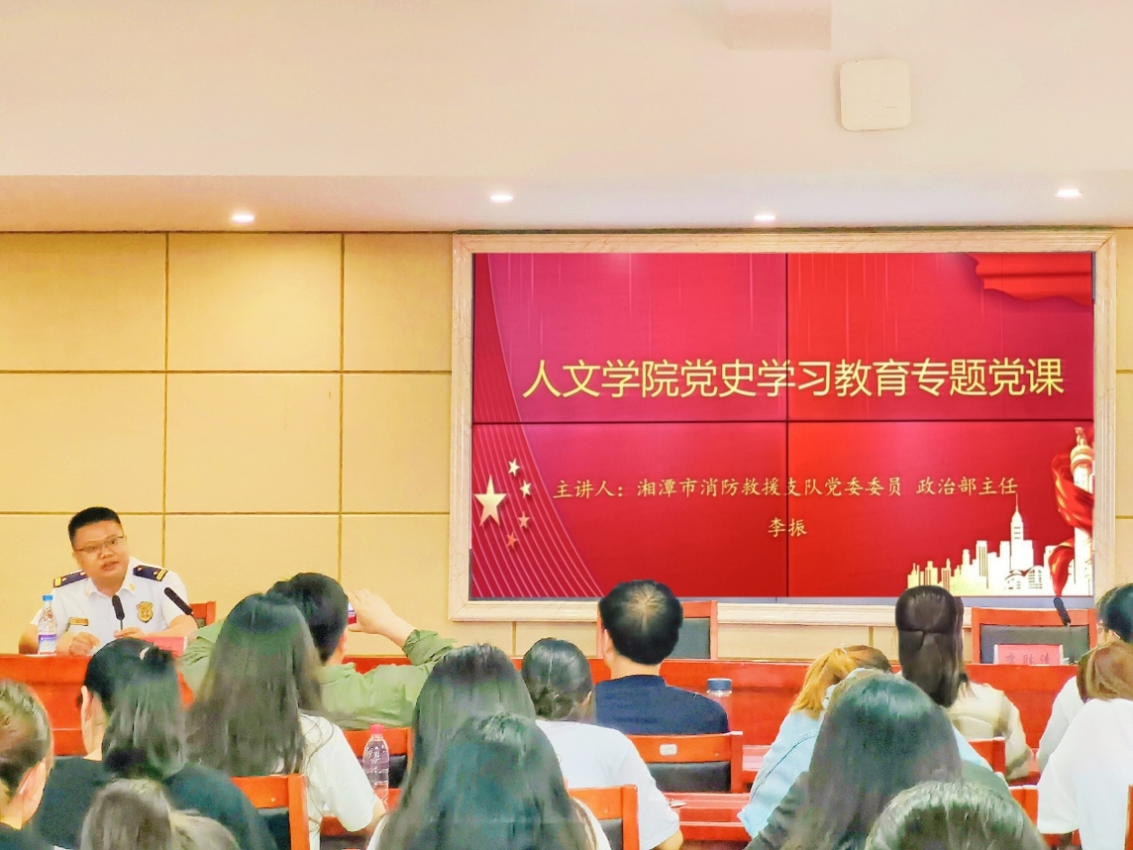 5月25日下午,湘潭市消防救援支队党委委员、政治部主任李振同志应邀为我校OD.COM平台·(中国区)体育官方网站师生党员讲授专题党史课。