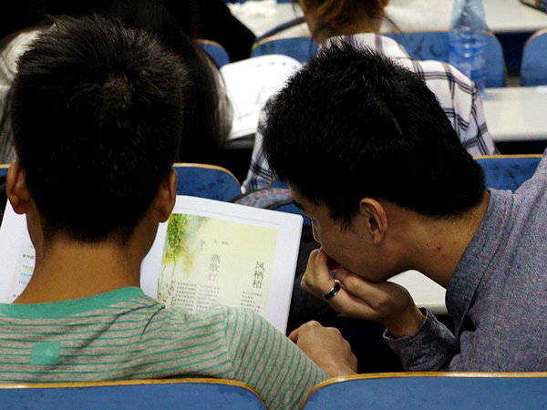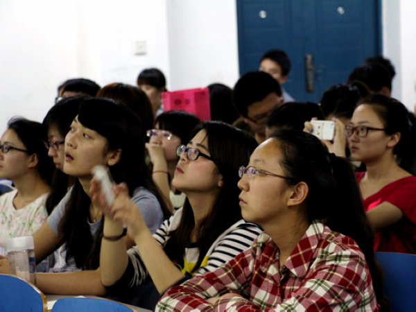 两位介绍者都向同学们放映了13级班刊设计大赛时各自班级所拍摄的宣传片,青春又不失温情,搞怪却不失创意,教室内响起阵阵掌声。