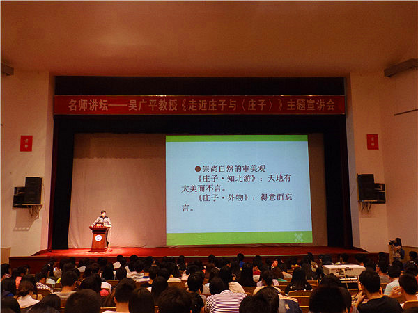 “我是一个纯粹的工科学生,对中国传统文化知之甚少,但是听了吴教授幽默生动的学术报告,使我有一种强烈的渴望去进一步了解庄子与《庄子》。”来自机电学院的张亮同学在采访中如是说。