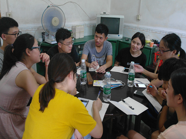 志愿者来到学校时,学校正在开展文艺活动,孩子和家长们用热烈的掌声对到来的志愿者们表示欢迎。其后,我院志愿者们与来自其他学校的志愿者们一起对相关授课计划展开细致的讨论与严谨的部署。“二三年级的班长很有领导力,班级任务交给他是没有问题的……”支教小分队召开会议后,结合具体情况,对相关课程和老师分配进行了统筹安排。