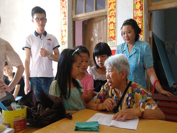 “我叫谭清”,“我是吴雨晴”……看见志愿者们,孩子们踊跃地向这些新老师介绍着自己的名字,学校里孩子们稚嫩童真的声音起伏不穷。一位小男孩在爷爷的陪同下怯生生地走进教室,他转身地对志愿者说:“老师,我的孙子只认识1-50的数字,麻烦老师耐心教教孩子。”朴实的话里尽是对孙儿的疼爱关切。
