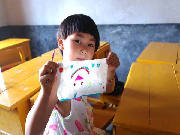 上课哨声吹响,低年级孩子们端端正正地坐在座位上,教室的墙上,贴着孩子们折的五颜六色的千纸鹤和心愿卡。美术课上,幼儿班的孩子当起了“小老师”,在黑板上一笔一划地写着自己的名字、用彩色粉笔仔细地画着房子、小女孩、蝴蝶等等;针对二、三年级的孩子们拼音知识薄弱的问题,志愿者叶甜用不同颜色的粉笔在黑板上标明不同种类的英语单词,并用童谣标写拼音,让孩子们更好地认识和学习水果,数字,月份,四季等不同的英语表示方法;音乐课上,黑板上写着密密麻麻的歌词,孩子们模仿老师的发声和旋律,一遍一遍地练习着《宁夏》:“宁静的夏天,天空中繁星点点……”师生一道度过的夏日,仿佛不再是聒噪和闷热,更多地是难得的清凉和宁静。
