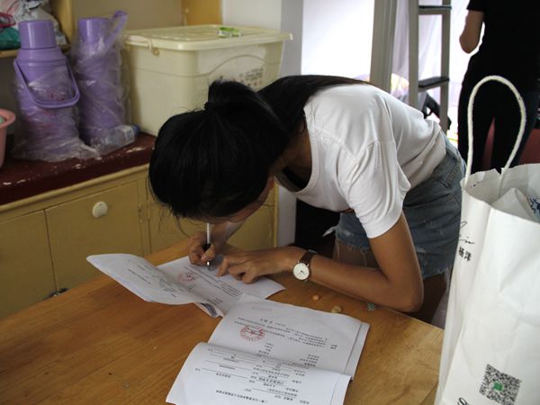 “从小父母对我就是自由式管理,很多事情都是我独自去做。而且我从初中开始就住校,所以我比较习惯吧。唯一有点担心的是这边的饭菜口味和我们那边不一样。”这个来自广西梧州的瑶族女孩一边有条不紊地摆放物品,一边笑着向志愿者说道。安排好用品后,她麻利地清洗被单和脏衣服,弯下身子,摆动着浸泡在水里的衣服,又把它从盆里提出来,晃动着小小的胳膊使劲拧干。在舍友外出时,看见宿舍里布满桌面和地面的灰尘,她又一个人认真地打扫起来,擦拭桌柜、清扫垃圾、拖地,似乎都难不倒她。