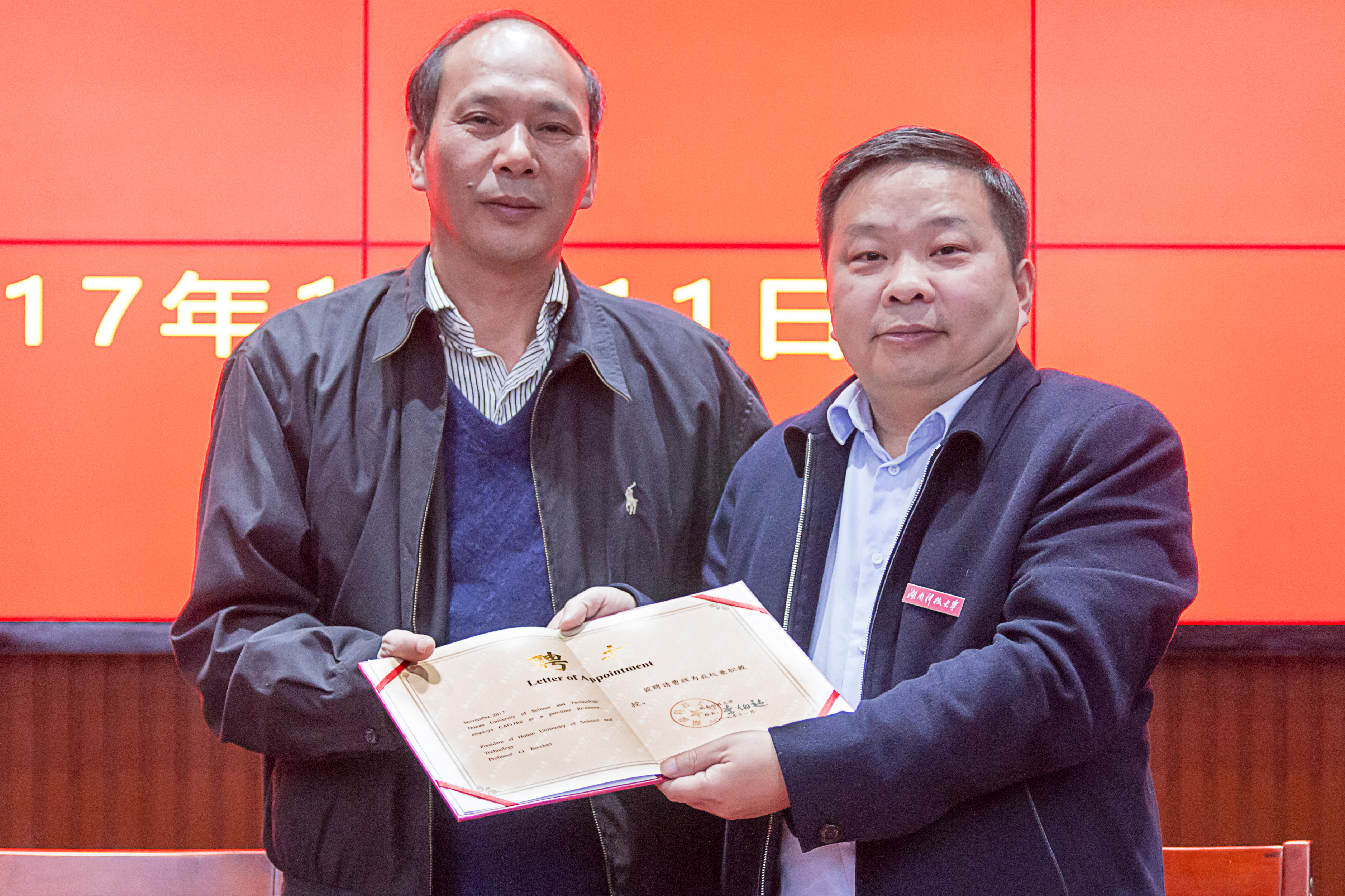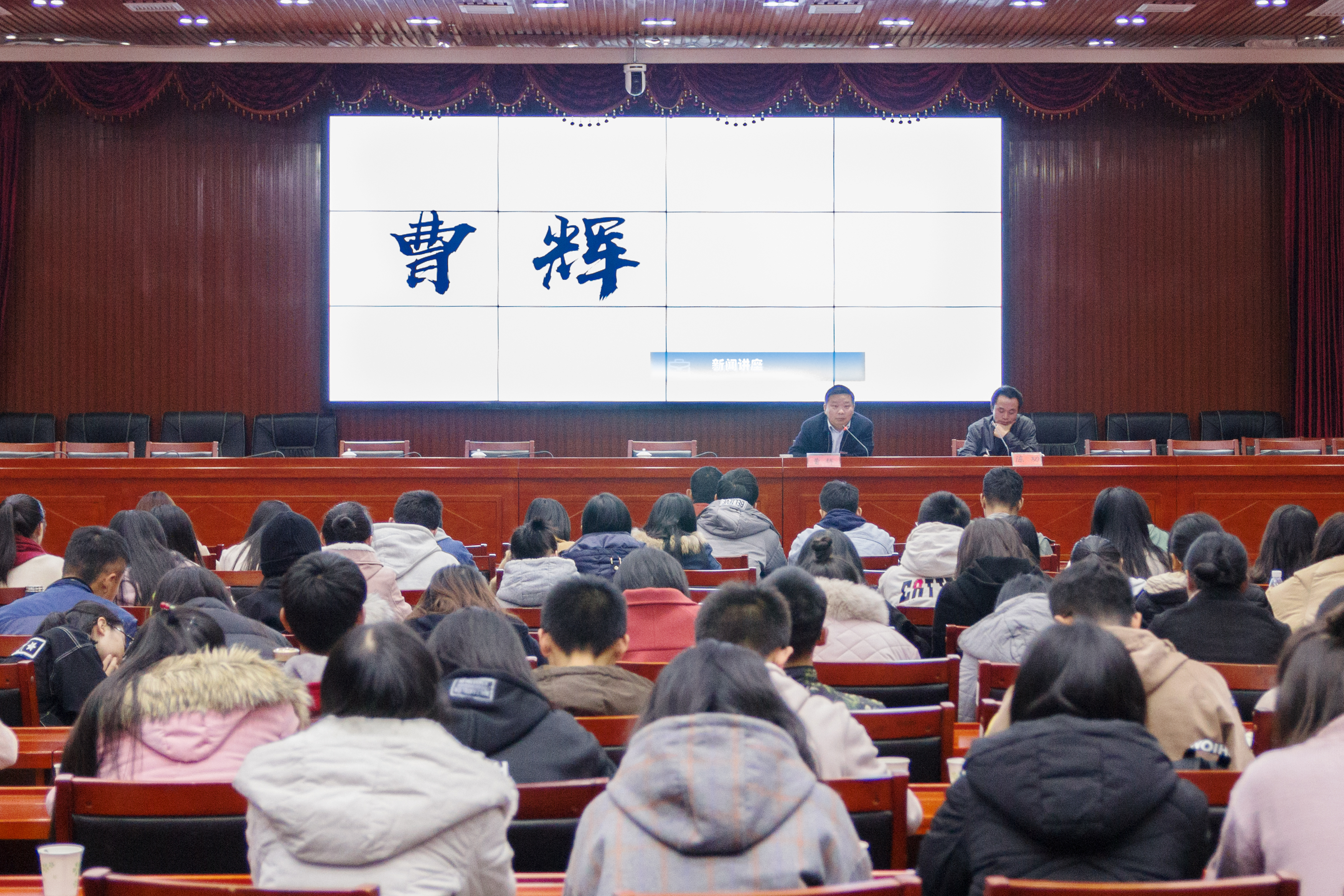 为加强我新闻专业的理论性,推动新闻专业的快速发展,12月11日晚,于立德楼五楼报告厅,《湖南日报》湘潭分社社长曹辉受聘为我院兼职教授,校长李伯超出席聘任仪式,我院院长刘奇玉、校党委宣传部部长何频、副部长廖志鹏以及人事处副处长廖俊国参加。仪式结束后,曹辉以“我的记者之路”为题作新闻讲座。我院新闻系主任陈功主持本次讲座,大学生通讯社校广播电视台近300名校园记者以及我院17级新闻专业的全体学生到场聆听。