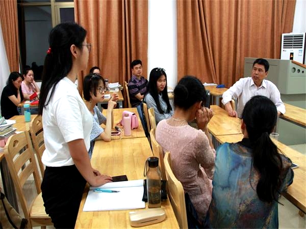 在师生互动阶段,孟蓬生研究员与广大师生围坐在一起对字音演变、古代音韵学、语音的社会属性等相关问题进行了畅谈。同时也分享了他的日常学习方式,如自身平时积攒材料,发现生僻字进行记录和整理,材料成熟后写成文章等习惯。并寄语在场的学生:“言有易,言无难”,“看天下书不得妄下雌黄”。