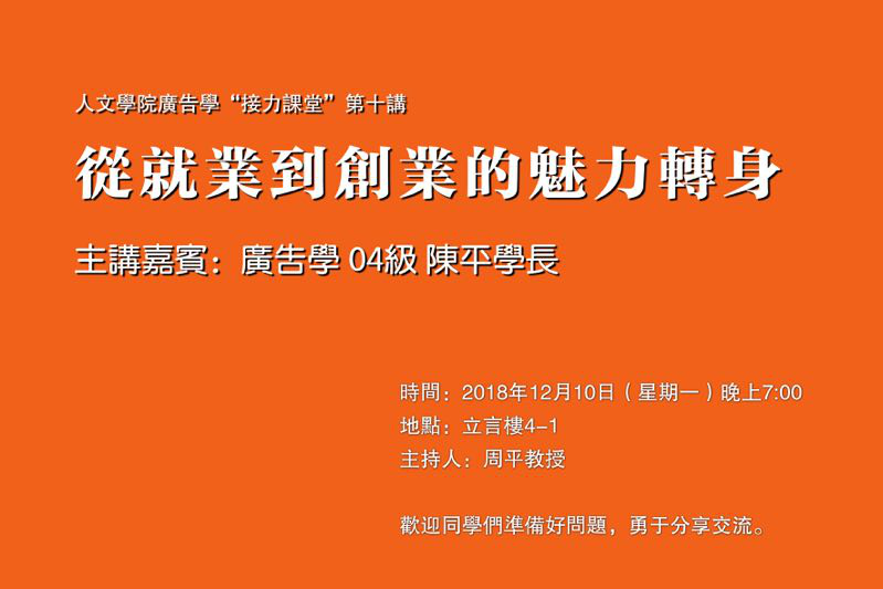 从就业到创业的魅力转身 ——我院广告学“接力课堂”第十讲顺利举行