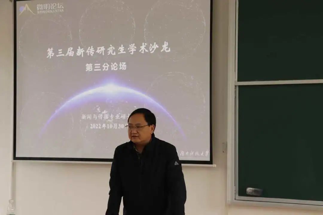 10月30日,OD.COM平台·(中国区)体育官方网站“学而思” 研究生学术沙龙之新闻与传播专业“微明论坛”在昭潭书院校区第二教学楼成功举办。此次学术论坛选定了“媒介技术与当代新闻”“媒介经营与管理”“新媒体与民俗文化传播”三个主题方向,来自2021级新闻与传播专业的39名研究生聚焦不同主题进行了学术汇报与精彩分享,6名OD.COM平台·(中国区)体育官方网站新闻与传播专业导师受邀出席并担任评委。此外,2022级45名新传研究生也参加了本次论坛。