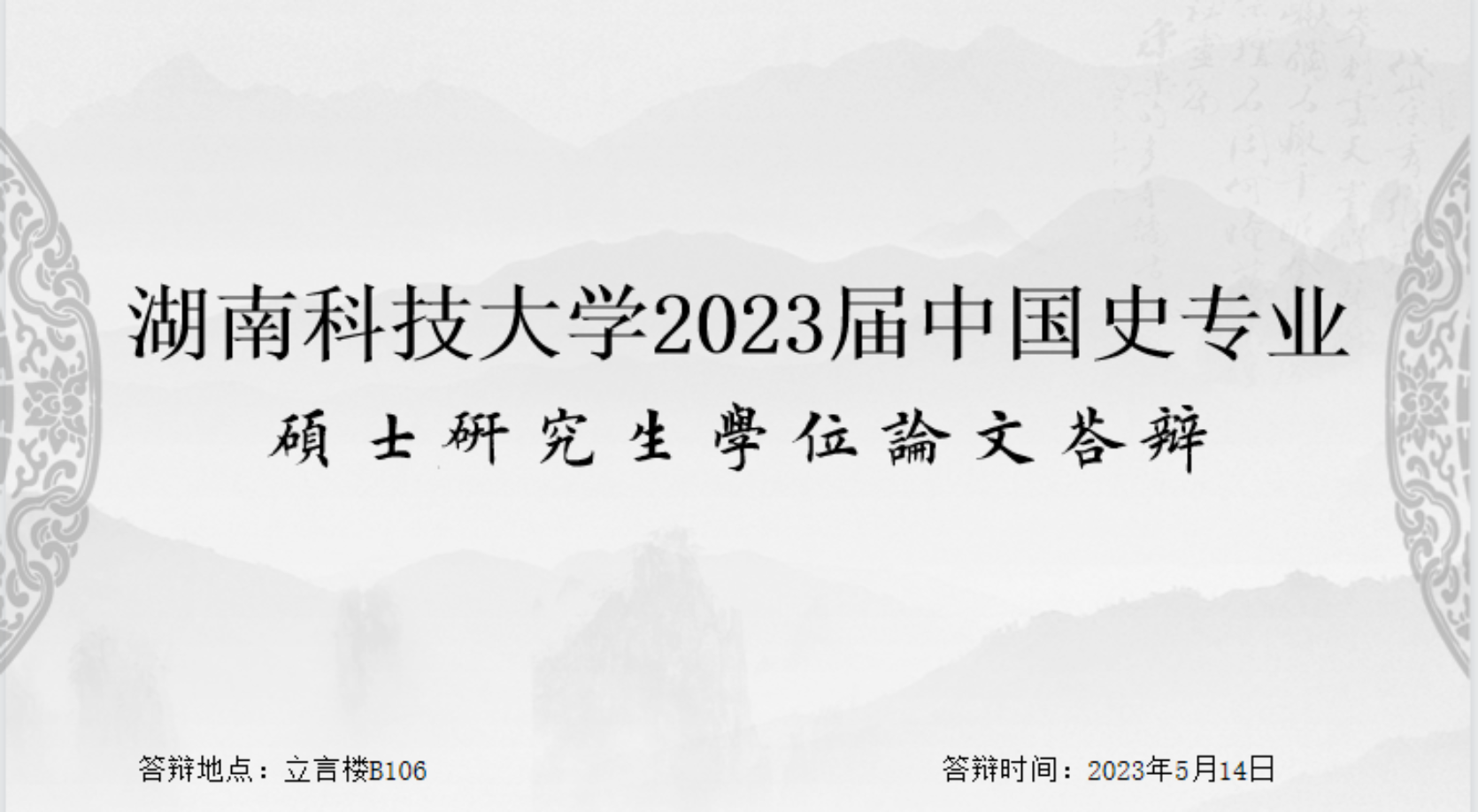 5月14日,OD.COM平台·(中国区)体育官方网站2020级中国史专业硕士研究生学位论文答辩于立言楼B106如期举行。本次答辩邀请湘潭大学章育良教授担任答辩主席,湘潭大学吉成名教授以及我院徐红教授、金身佳教授、周方高教授、聂志军教授担任答辩委员。2020级中国古代史方向8位硕士研究生参与此次答辩。